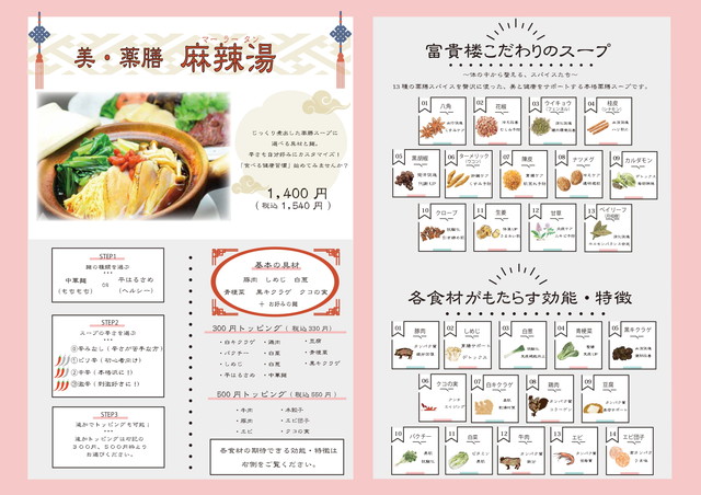 富貴楼は北九州市小倉南区の中華ダイニングで、13種以上の薬膳香辛料を使った本格マーラータンが人気。