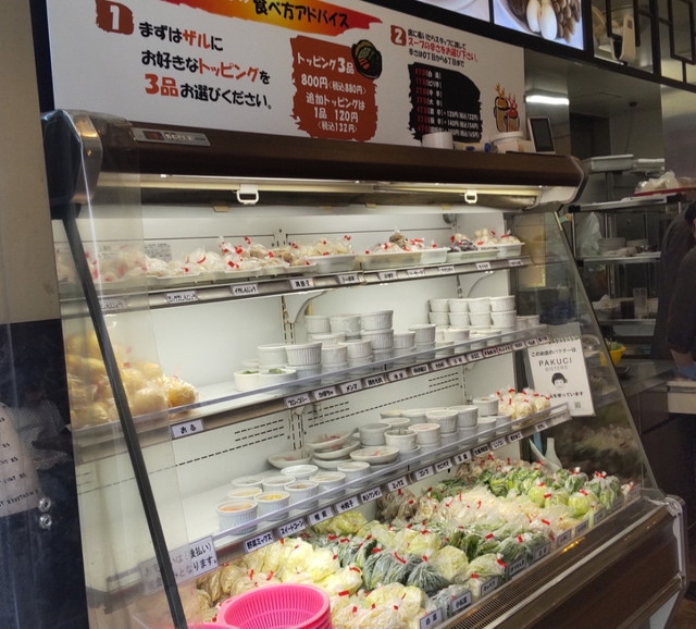 具材(トッピング)はビュッフェ形式で800円。3種類選べ、120円で1品追加も可能です。