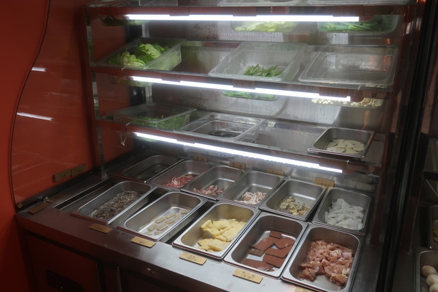 龍辛のマーラータンは量り売りのバイキング形式が特徴で、店内に並ぶ多彩な具材から自由に選べます。