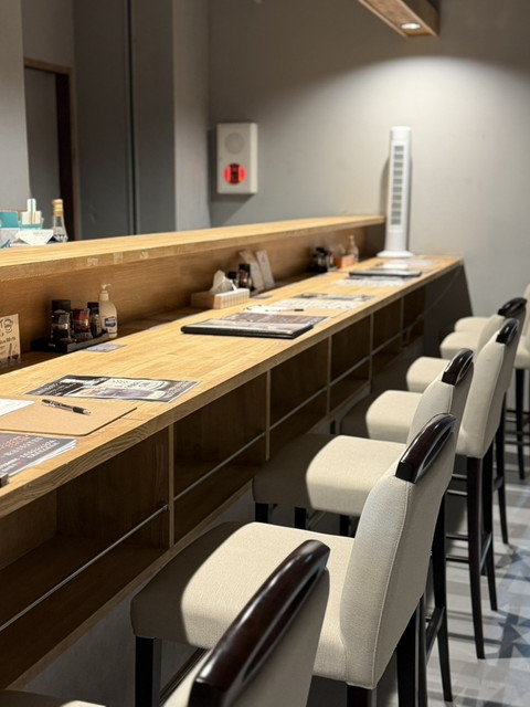 店内には 味変用の調味料・薬味カウンターがあり、香味油・唐辛子・山椒・黒酢・にんにくなどを自由に追加できます。