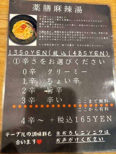 辛味と薬膳の両方を楽しめる“整う麻辣湯”として、夏空ならではの魅力を持った一杯です。