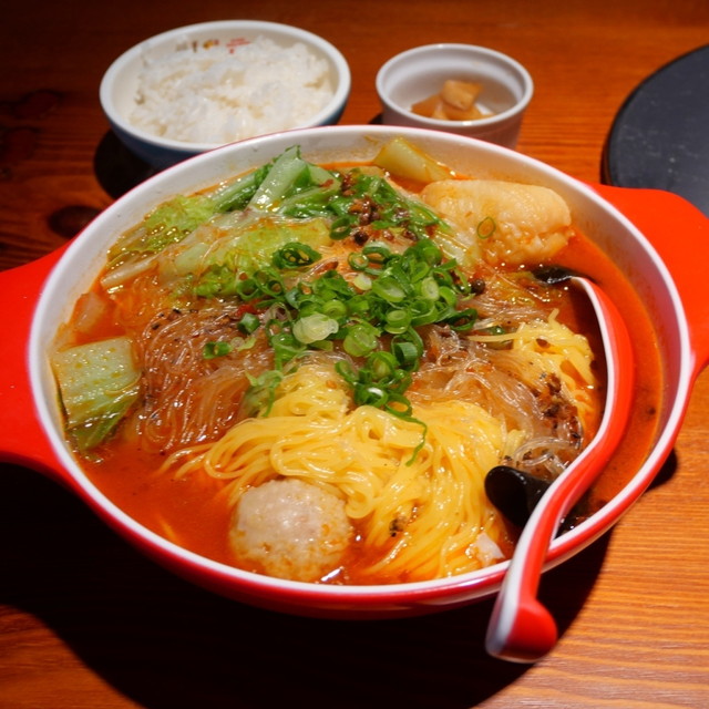 辛さは4段階、麺は春雨・サリ麺・丸麺などから選べ、1,000円以上の利用で麺サービスもあります。
