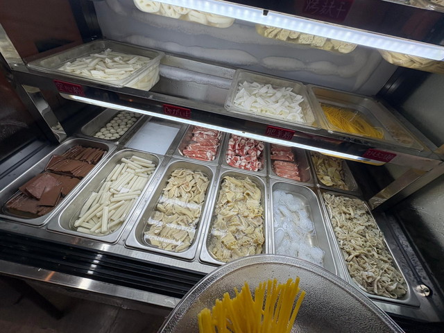 野菜、肉、海鮮、豆腐、練り物などが種類豊富に並んでおり、色鮮やかで選ぶ楽しさに満ちています。