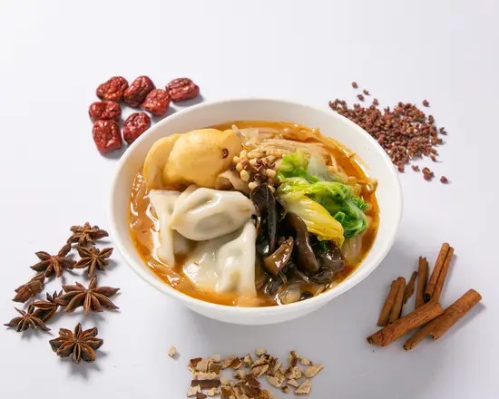 ぷるっとした水餃子と、豆乳ベースの白麻辣スープを組み合わせた一杯。