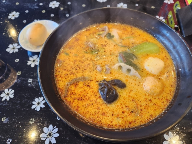 まず、スープは鶏や豚、牛などをじっくり煮出した出汁をベースに、30種以上の薬膳スパイスをブレンドしており、香りとコクが奥深く、単なる“辛いスープ”以上の味わいが感じられます。