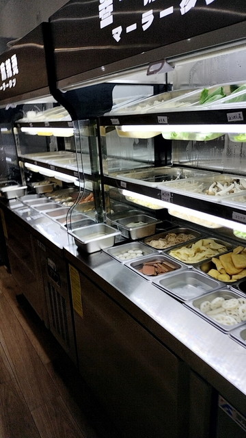 具材と麺(または春雨など)はセルフ形式で選べるスタイルを採用しており、客自身が器に具を盛り付けていく方式です。