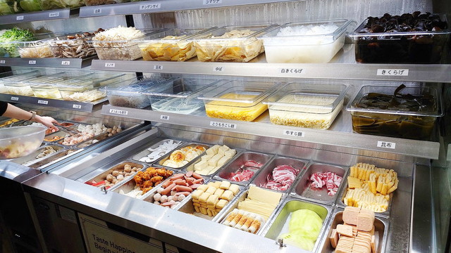 具材は60種類以上が並び、野菜、練り物、肉、魚介類など多様な選択肢を自由に選べる点が強みです。