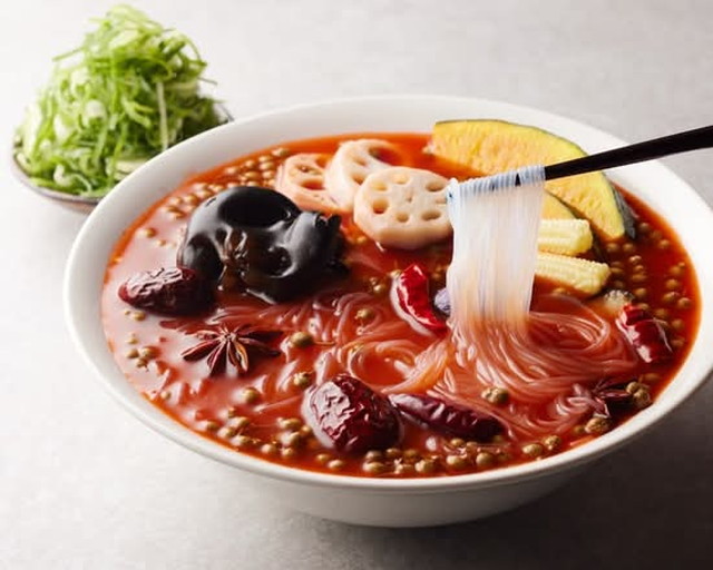 基本のスープと春雨に加え、好きな具材を量り売りで追加する方式を採用しており、価格は1g=3.1円。野菜・きのこ・豆製品・魚介・肉類など50種類以上のトッピングが揃い、自由度の高い一杯を作れます。