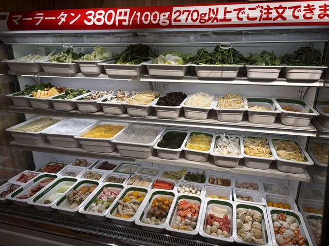 具材を自由に選び、重さで料金が決まる明朗なシステムが特徴で、マーラータンとマーラーバンは1gあたり4円、マーラーシャングオは1gあたり4.5円で提供されています。