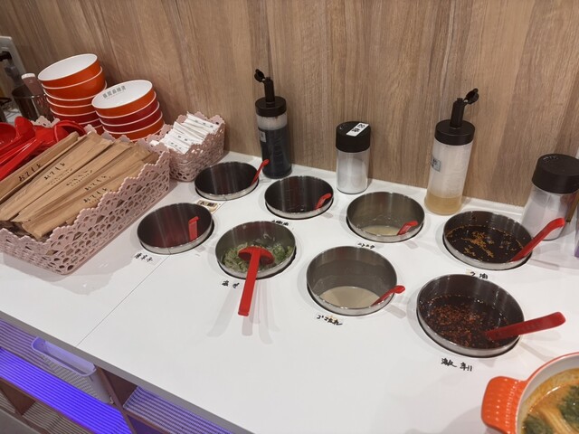 さらに、味変用の調味料カウンターを設置しており、花椒や調味油などを自由に追加できます。