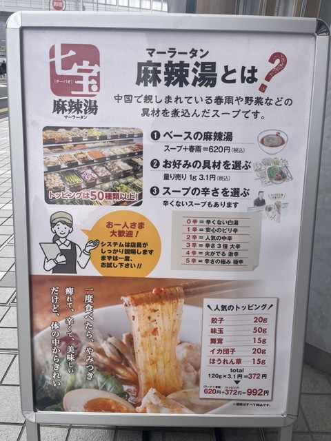 しかし2025年2月、「七宝麻辣湯(チーパオマーラータン)」の大船店が駅前にオープンし、ついに大船地区にも本格的なマーラータン文化が根を下ろすこととなりました。
