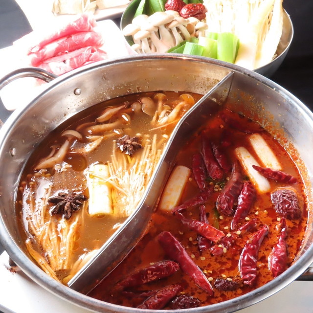 さらに火鍋では、2種類の旨辛スープでシンプルながら本格派の辛味鍋を楽しめ、具材を存分に堪能できるコース設定もあります。