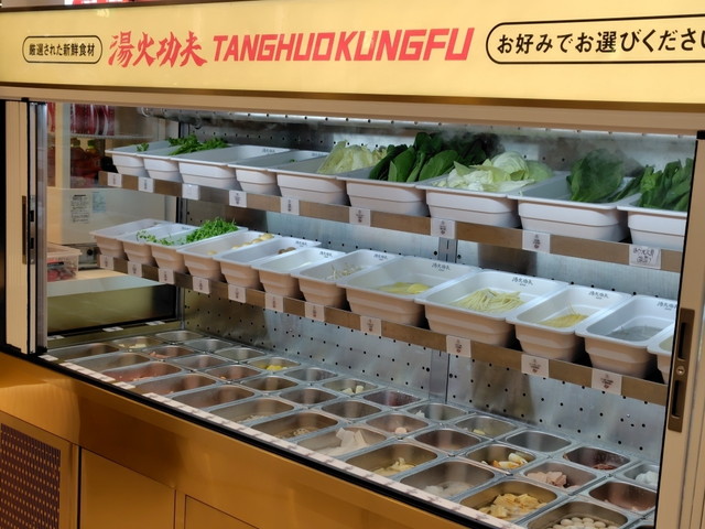 自分好みの具材をトレーに取り、重さを計って会計し、スープや辛さなど調理方法を選んで仕上げてもらうという方式です。