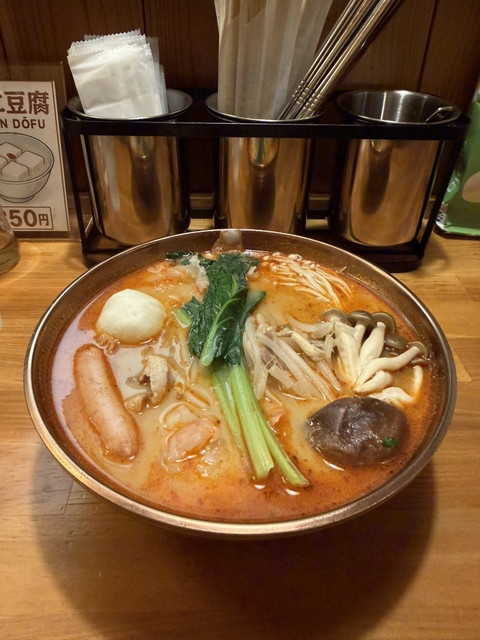 スープは、数種類の唐辛子と花椒(ホアジャオ)を独自にブレンドした特製麻辣醤をベースに、鶏・豚骨や香味野菜の旨味を重ねた濃厚な味わい。