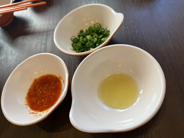 さらに、店内には調味料カウンターが設置されており、ニンニクや香味油、黒酢などを加えて自由に味変できるのも魅力。