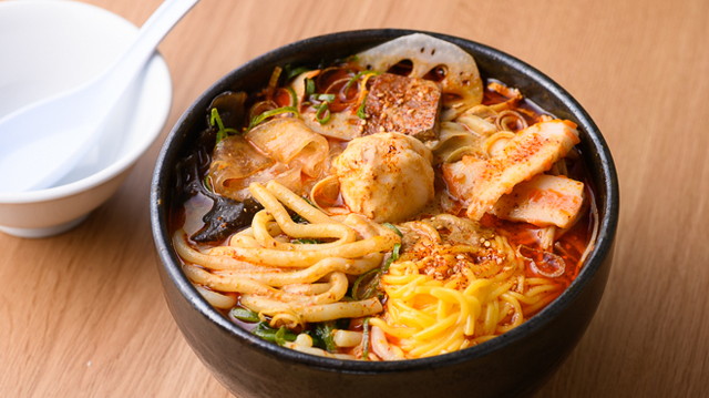 また麺は、太めの春雨や中太ストレート麺など、複数種類が1杯に組み合わされており、それぞれの食感がスープの辛味と絶妙にマッチします。