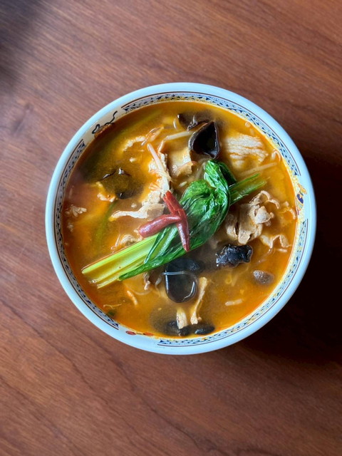 スープは四川系の麻(花椒)と辣(唐辛子)をしっかり効かせた本格派。