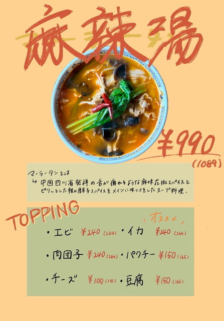 2025年10月1日、中華料理 聚紅源は従来の中華料理店としての営業を続けながら、新たにマーラータンメニューとバイキング形式のシステムを追加導入しました。