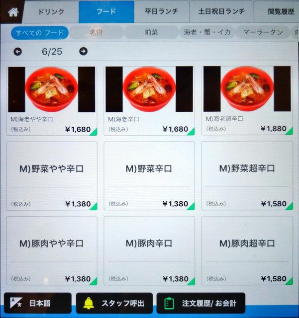 辛さは3段階で調整可能ですが、牛骨スープとトマトスープは辛さなしの設定となっています。