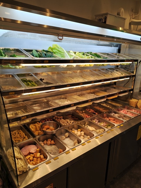 麻辣燙のマーラータンは、セルフ式の量り売りバイキング方式で注文します。