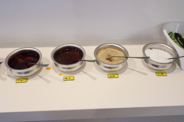 さらに、卓上には辣油・麻油・酢が用意されており、香りやコク、酸味を加えながら味の変化を楽しめます。